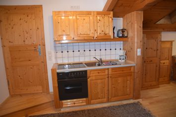 Ferienwohnung 2 Oder einen Urlaub in unserer zweiten Ferienwohnung. Sie wurde ebenfalls in eigener Handarbeit im Landhausstil eingerichtet und ist ca. 70 m² groß. Blick in die Küche: